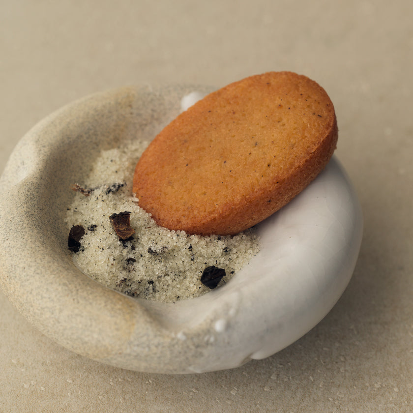 バターのふくよかな香りと、シチリア産アーモンドの杏仁のようなミルキーな香り。そこにスパイスやお茶など、シェフだからこそ作り出せる組み合わせで、他にはない風味豊かなおいしさを生み出しました。