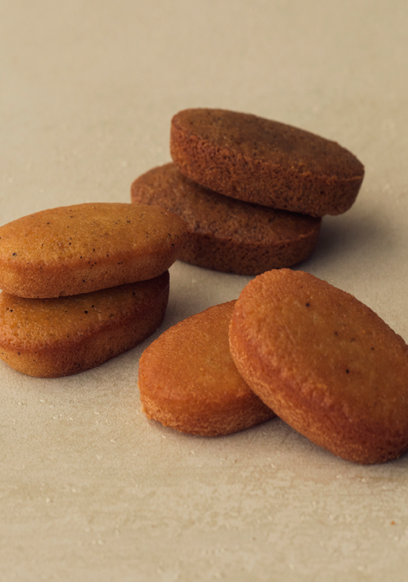 シチリア産の上質なアーモンドパウダーをたっぷりと加えることで、潤いのあるしっとりとした食感と豊かな旨味を引き出しました。配合や生地の作り方にも工夫を重ねることで、生キャラメルのような濃厚で凝縮された味わいに。